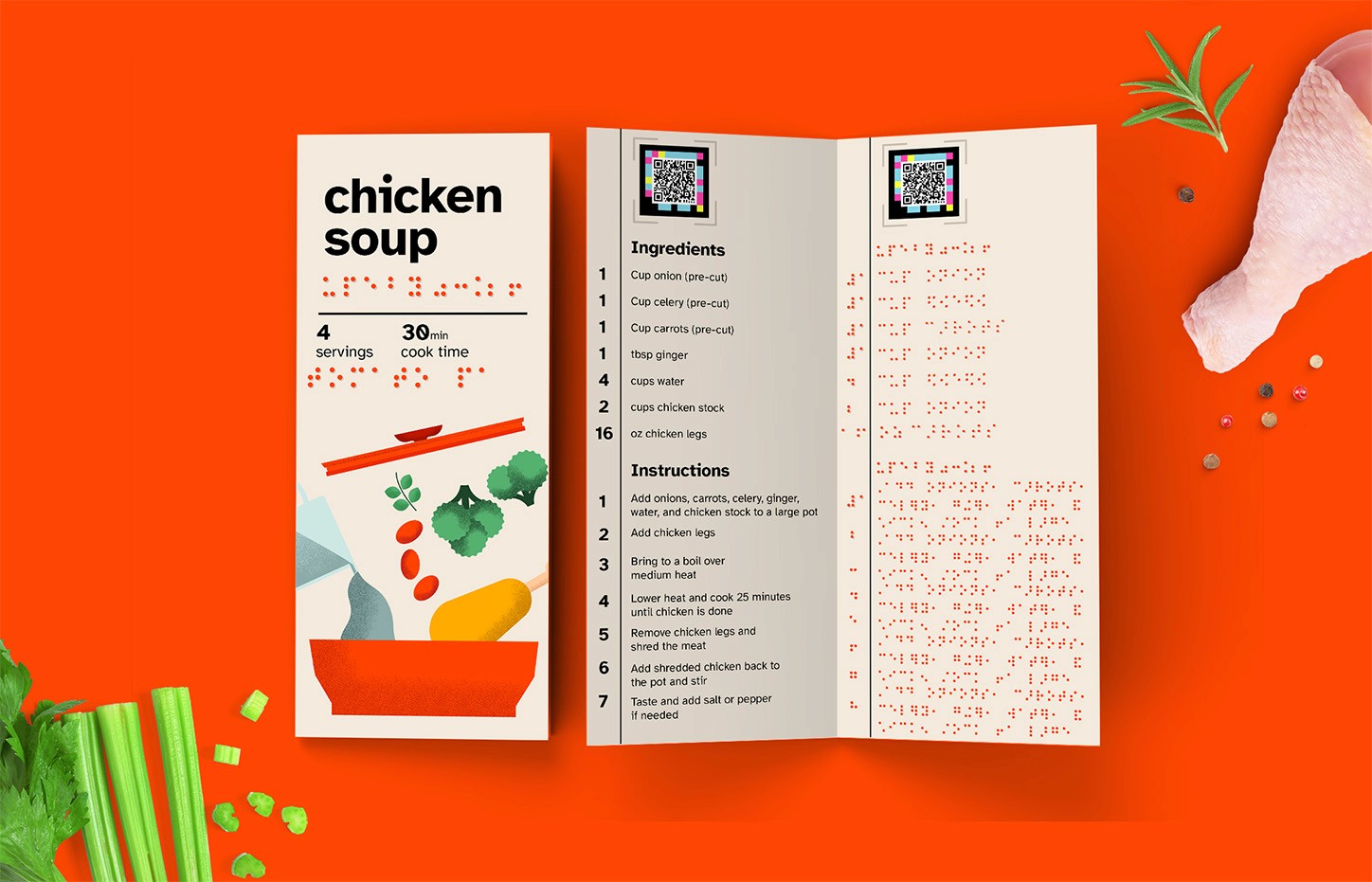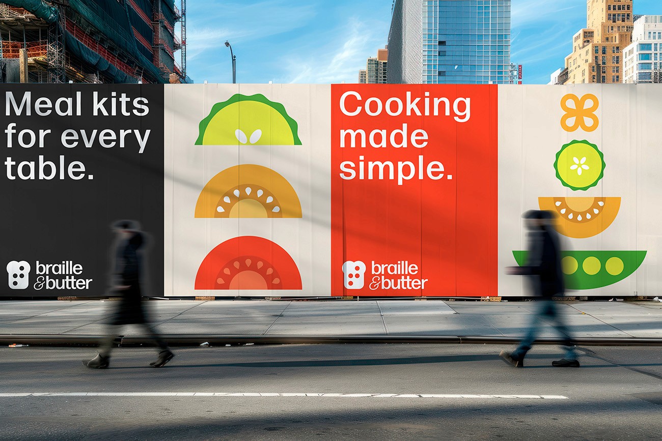 Over 32 million Americans are visually impaired or blind- yet most everyday products fail to consider their needs. Braille & Butter is an inclusive meal kit program designed to make cooking simple, enjoyable, and empowering for people with visual impairments. The visual identity focuses on making cooking feel easier and more enjoyable through a vibrant, high-contrast palette that improves legibility and clarity. Backed by research, every design detail is crafted to reduce confusion and support a calm, confident cooking experience.