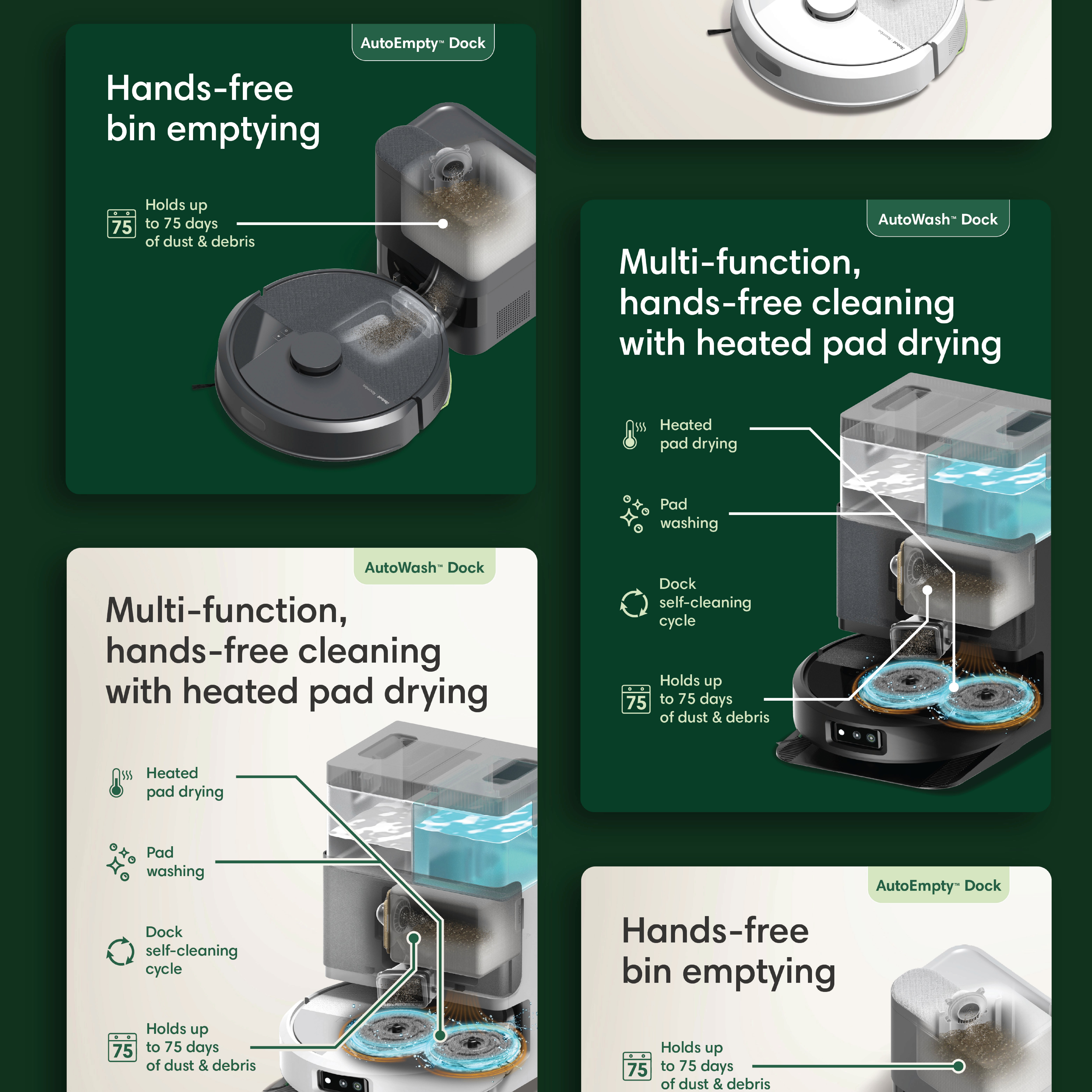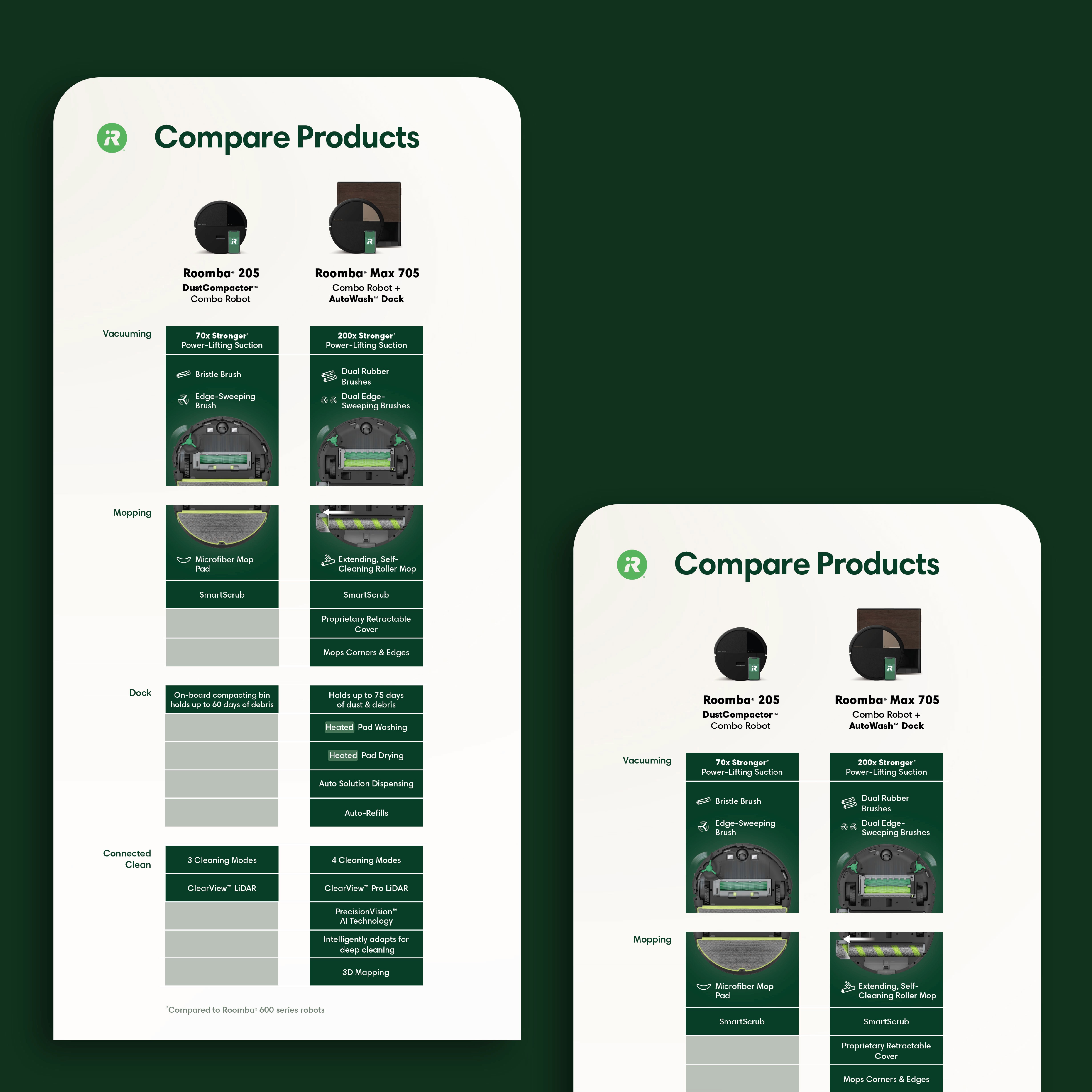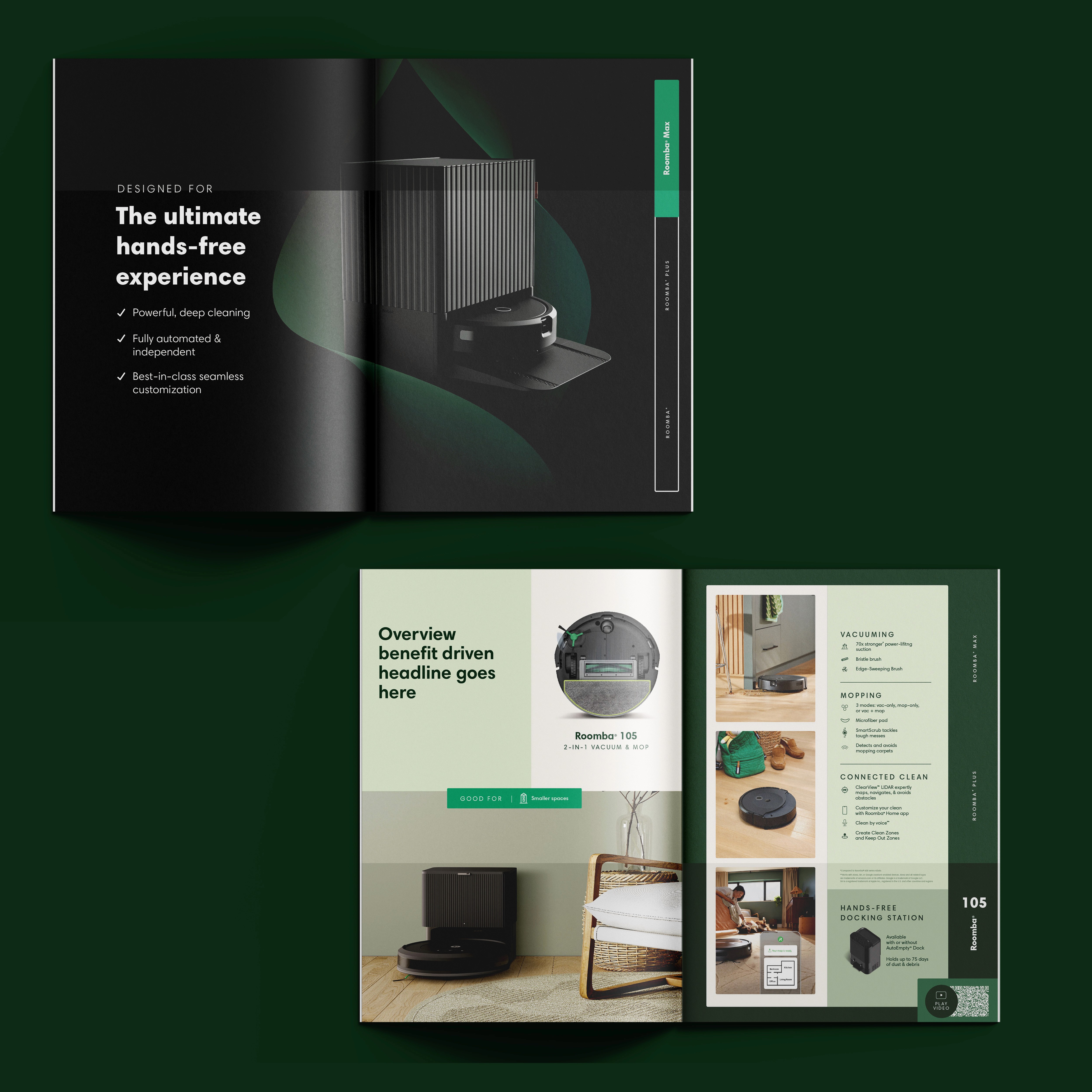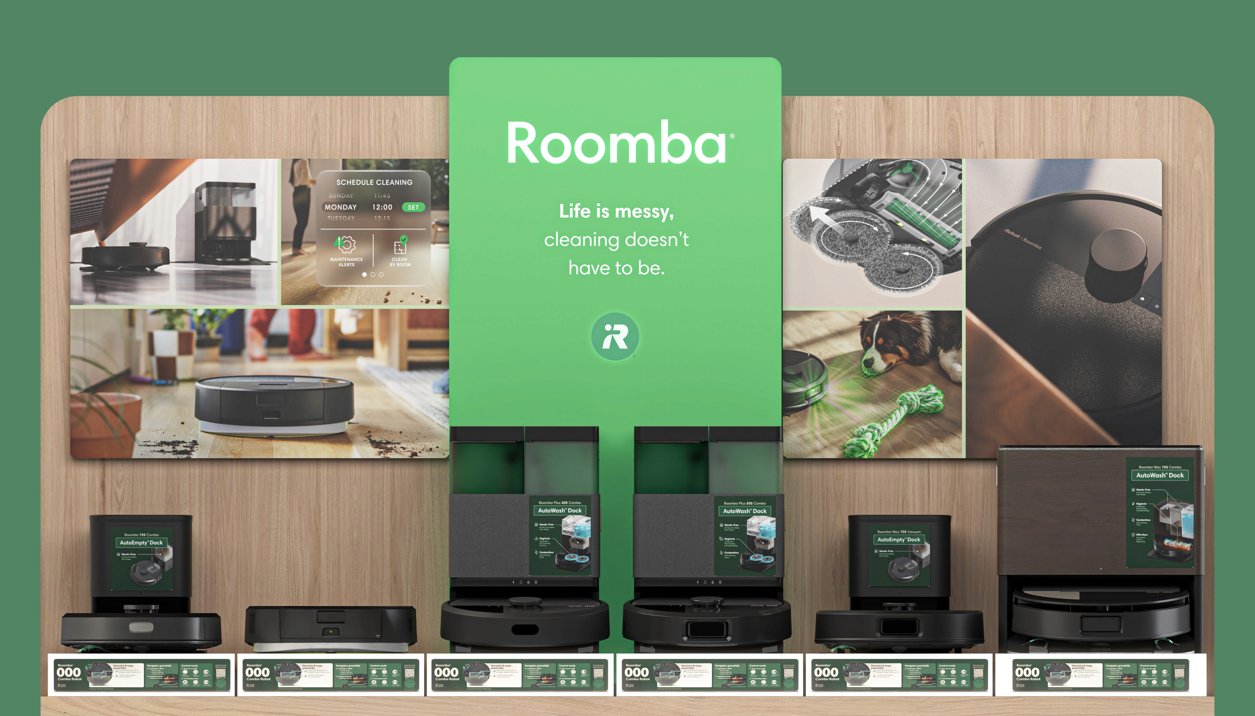 With iRobot’s category position slipping, we set out to better communicate their updated product line. The goal was to deliver a premium, approachable experience that's educational but not overwhelming and tech-forward yet human-centered. Our goal was to streamline choices and guide confident decision making, while encouraging trade-up. Stakeholder interviews revealed shoppers felt overwhelmed at shelf. We responded with a simplified visual system that highlighted key product features, integrated digital tools, and allowed for future updates. A “tech-forward, yet human” design reclaimed the iRobot green and introduced warm materials to elevate the brand.