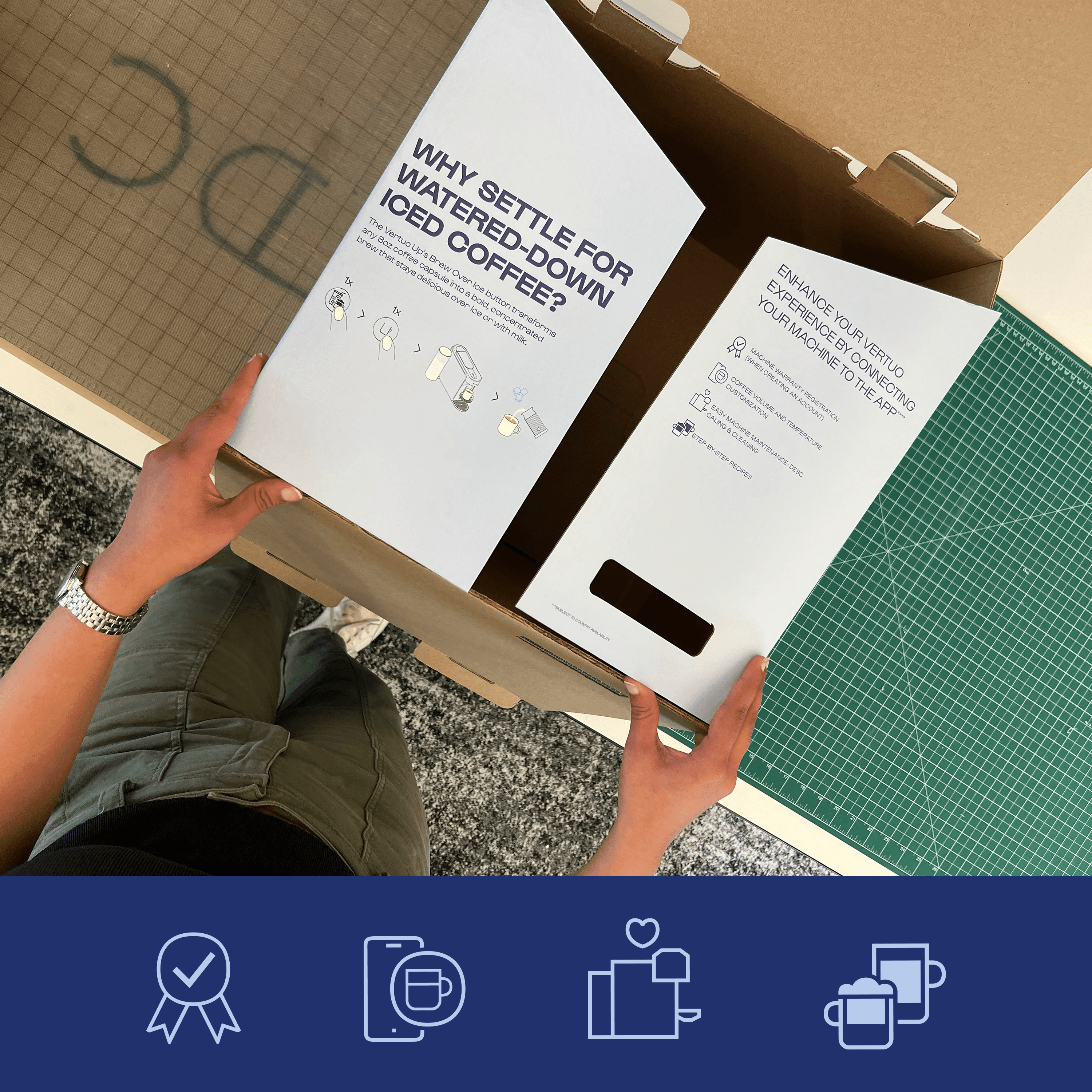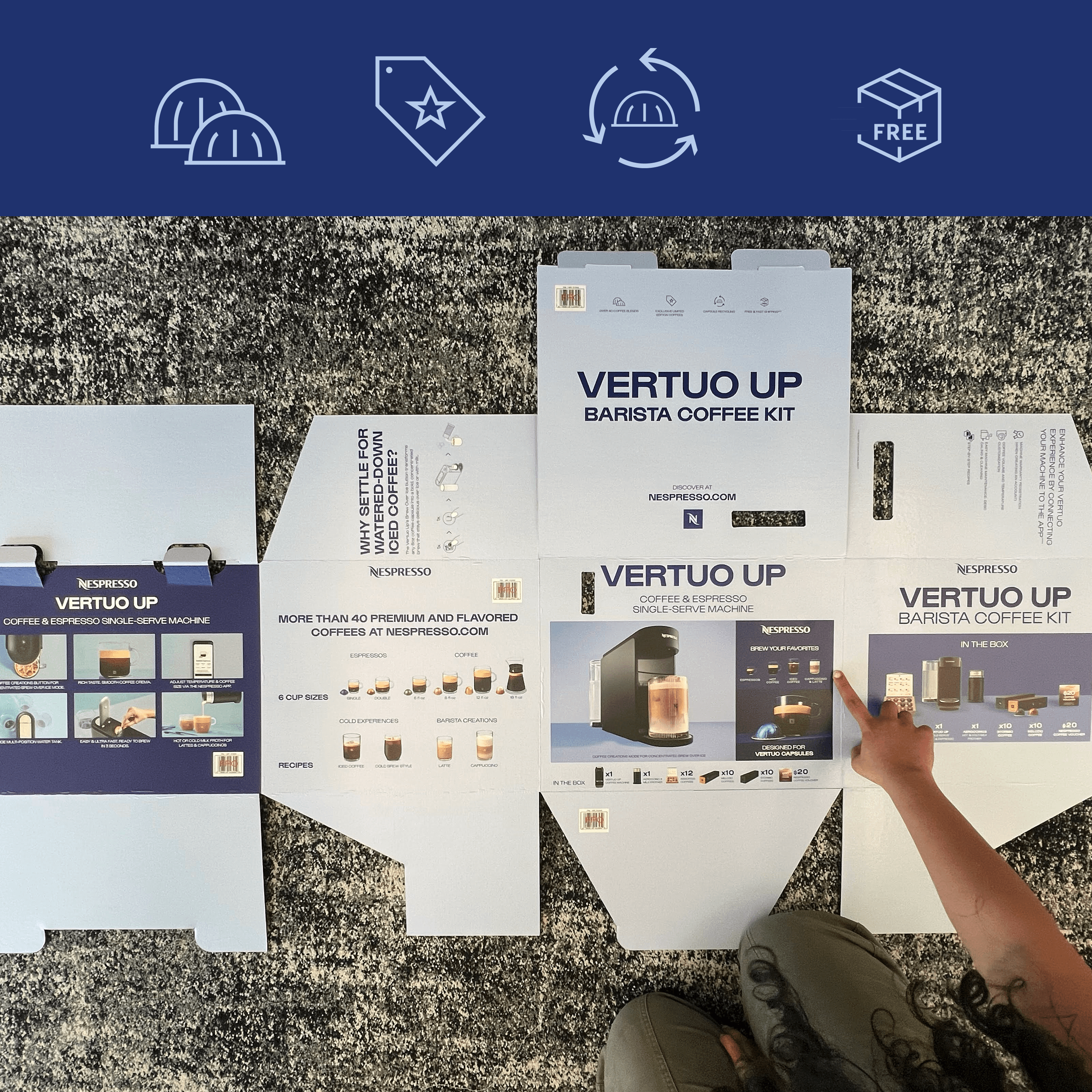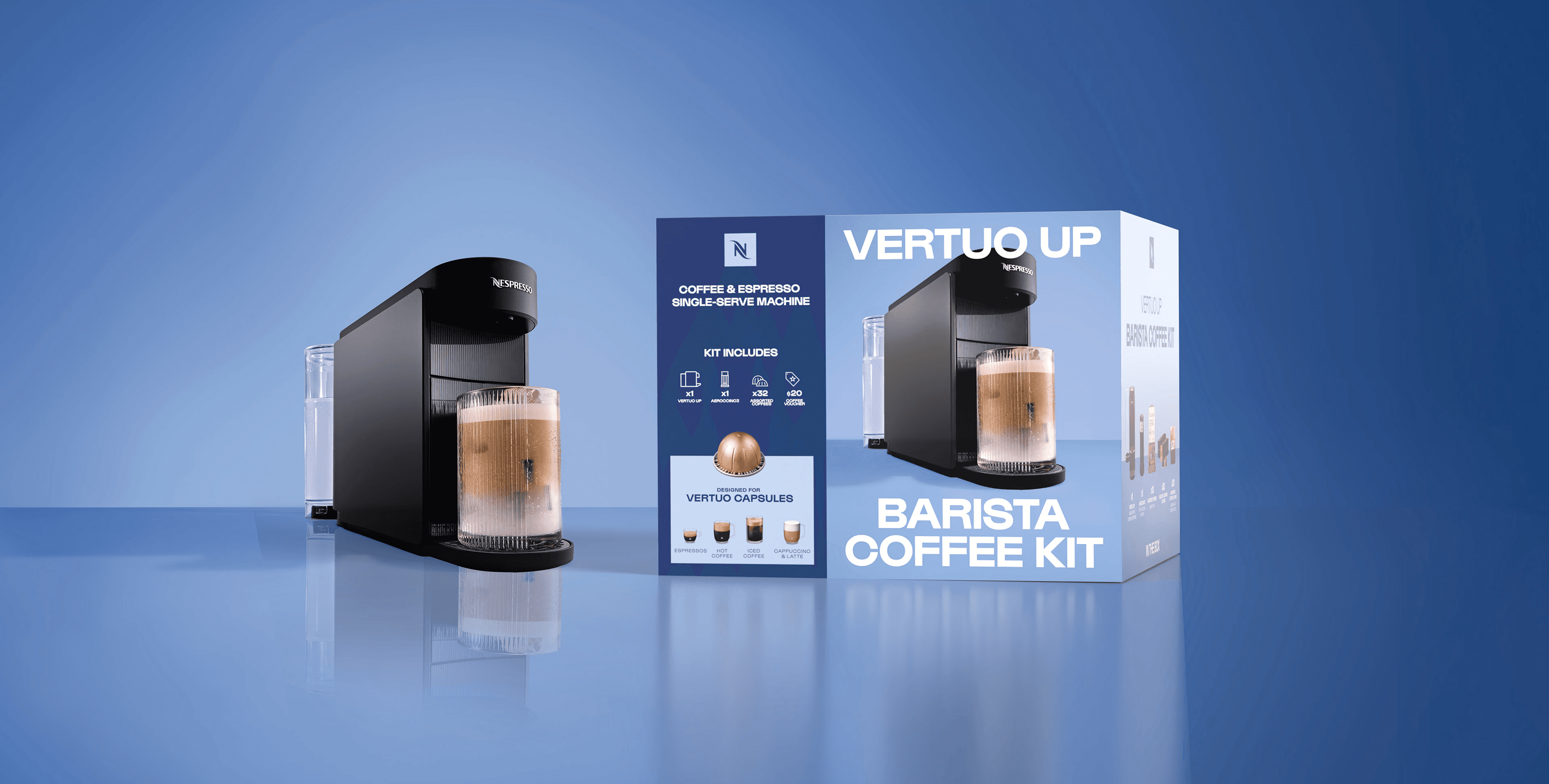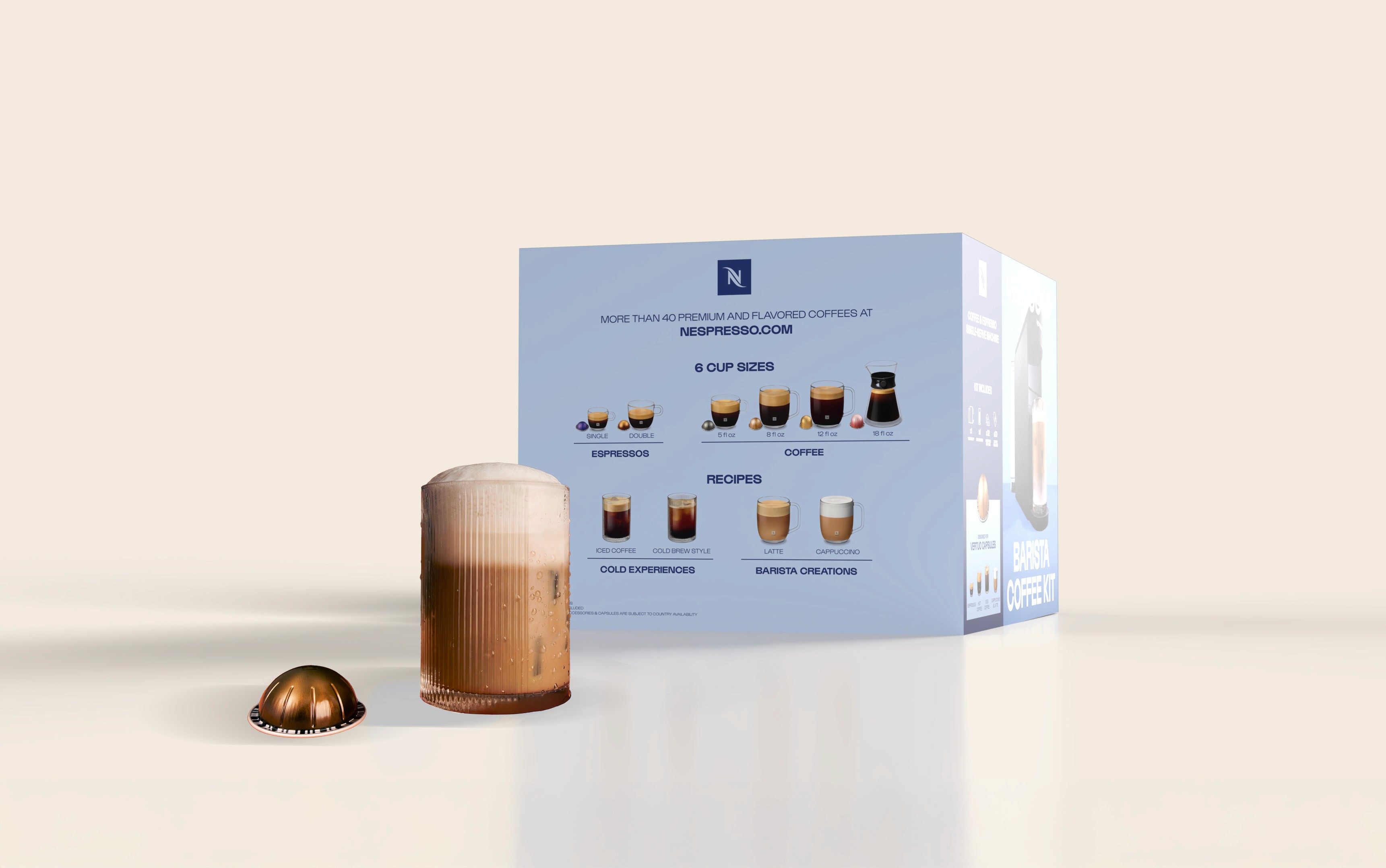 Nespresso’s rebrand focused on evolving the brand to feel more indulgent, energetic, and in tune with Gen Z- ultimately driving stronger appeal and sales with this audience. As part of this effort, we were tasked with designing product displays and packaging for the new Vertuo Up coffee machine. We drew from the square geometry of the Nespresso monogram and paired it with bold, expressive typography to create visuals with real stopping power, while still clearly communicating key product information to shoppers.